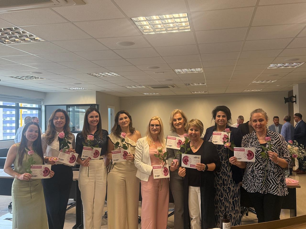 A manhã foi marcada por troca de experiências, aprendizado e networking, além de um momento especial em apoio à campanha do Outubro Rosa, com a entrega de rosas, bombons e um lindo cartão às mulheres da associação, reforçando o compromisso da entidade com a saúde e o bem-estar feminino. ?